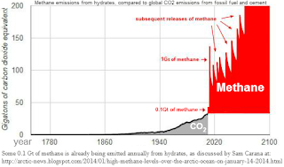 As described on above image and in an earlier post, huge amounts of methane could be released from destabilizing hydrates contained in sediments at the seafloor of the Arctic Ocean. Such releases could be triggered by strong winds causing an influx of warm, salty water into the Arctic ocean, as described in an earlier post and discussed in the 2017 video below.