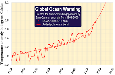 The NASA temperature anomaly vs. 1904-1924 shows that the temperature has been above 1.5°C for the past twelve months, as illustrated by the image below. The red line shows the trend (one-year Lowess Smoothing) associated with the rapid recent rise.