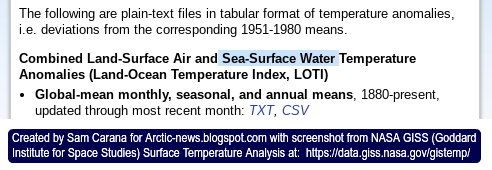 Finally, the NASA temperatures for oceans are the surface temperatures of the water, but it makes more sense to use air temperatures close to the water, which likely adds a further 0.1°C. This adds up a total adjustment of 0.78°C as applied in the red graph, which also has an 8th-order polynomial trend added.